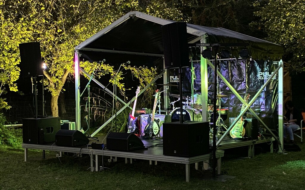 We have stage decking, steps and handrails, for use inside or out, and have a choice of stage covers for outdoor events, offering great protection from the elements for the performers and the equipment. Our larger stage cover also includes a backstage area for the convenience of the performers, ensuring comfortable load-in/out's and band changeovers etc.